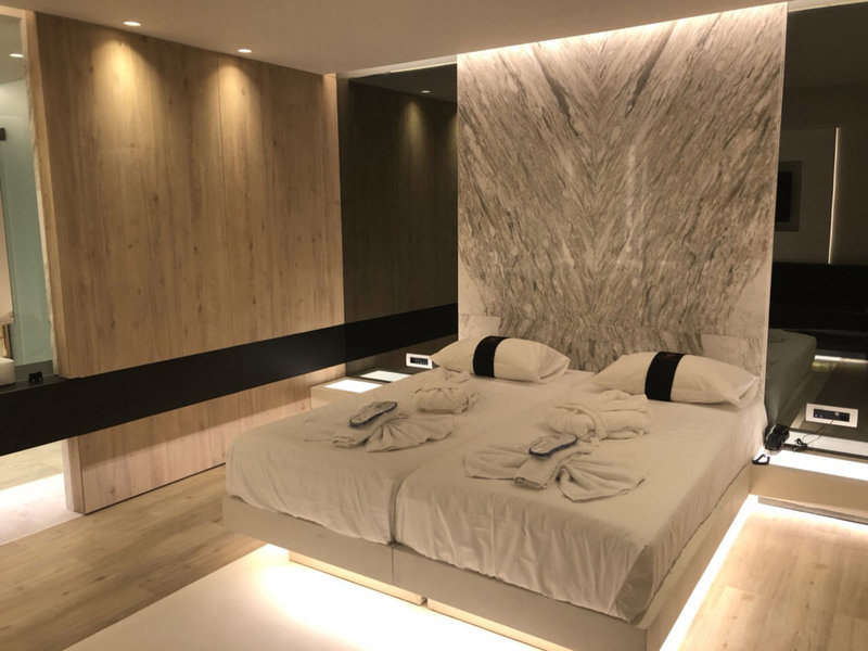 - Jednospálňový apartmán (SUX1), nachádzajúci sa v hlavnej budove, s čiastočným a obmedzeným výhľadom na more, cca 34-36 m², naposledy kompletne zrekonštruovaný v roku 2014, celkový počet izieb v tomto type izby: 2, rozloženie: obývacia izba, 1 spálňa, 1 manželská posteľ, 2 rozkladacie pohovky, klimatizácia: bezplatná, individuálne ovládaná, podlaha: dlažba, trezor (za poplatok), chladnička, rýchlovarná kanvica, TV s plochou obrazovkou, satelitná TV, vaňa alebo sprchovací kút, balkón s posedením