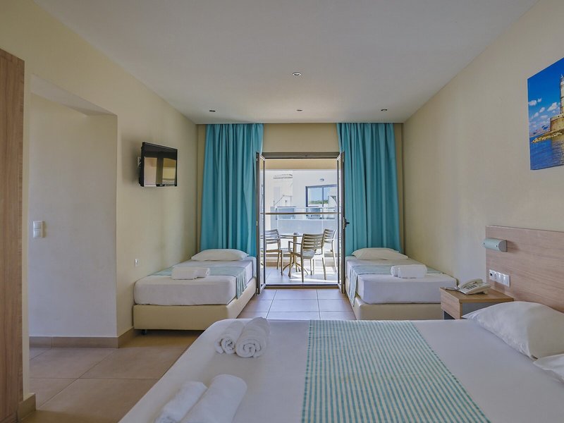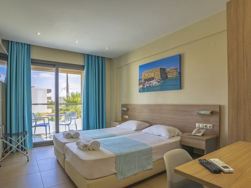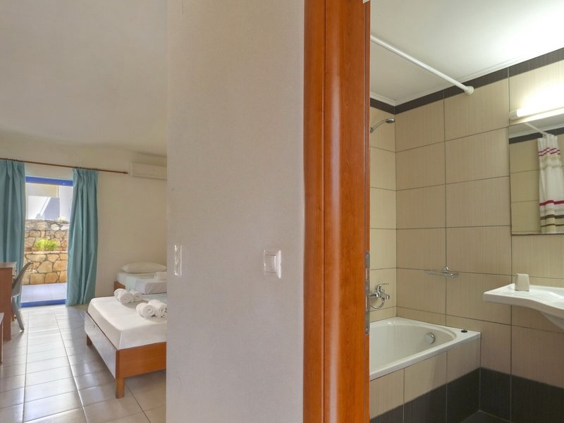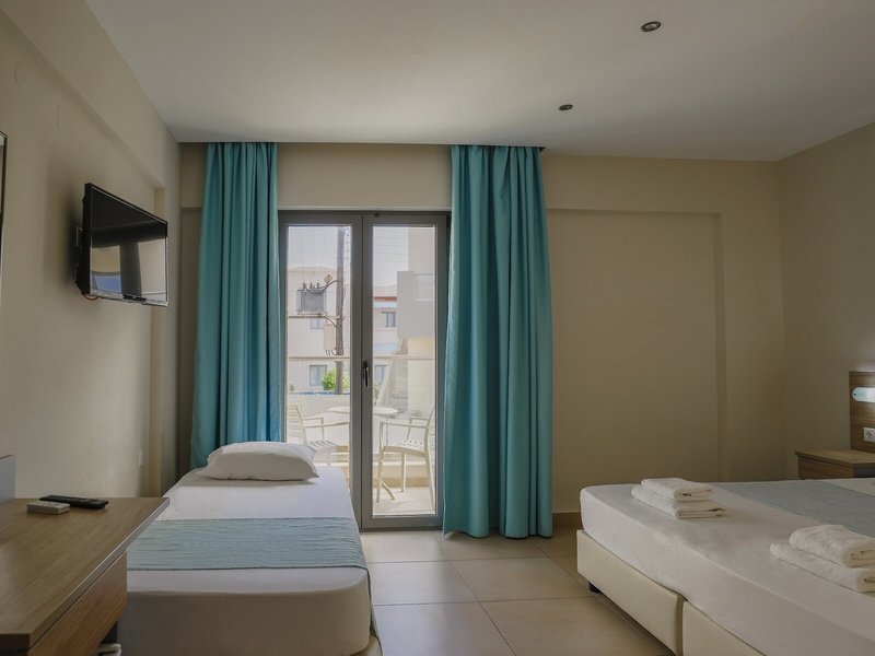 Ubytovanie: Klimatizácia a kúrenie zabezpečujú príjemnú vnútornú klímu. Hostia si môžu vychutnať výhľad na more z balkóna alebo terasy. Izby sú vybavené manželskou posteľou. K dispozícii je aj detská postieľka a prístelka. Hostia si môžu za poplatok uschovať cennosti v trezore. Štandardom je aj mini chladnička. Telefón s priamou voľbou a Wi-Fi (za poplatok) poskytujú maximálny komfort počas dovolenky. Kúpeľňa s vaňou je vybavená sušičom vlasov.