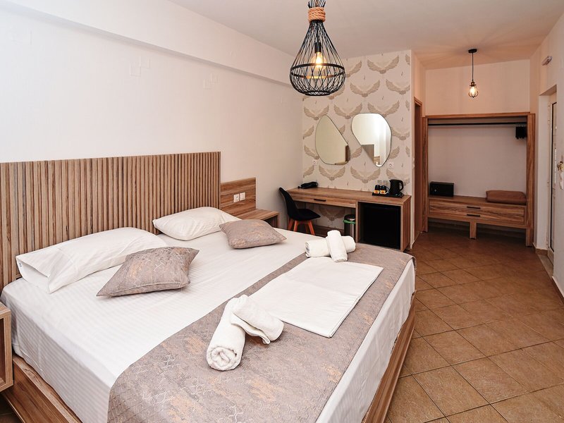 Ubytovanie: Izby sú klimatizované. Hostia si môžu vychutnať výhľad na more z balkóna alebo terasy, čo je štandardom vo väčšine izieb. Prístelky je možné požiadať. K dispozícii je aj trezor a minibar. Kuchynka je dobre vybavená na vlastné varenie s chladničkou, minichladničkou, sporákom, zariadením na prípravu čaju/kávy a rúrou. K dispozícii je aj telefón, TV a bezplatné Wi-Fi pripojenie na internet. Kúpeľne sú vybavené sprchovacím kútom a vaňou. Hotel ponúka rodinné a nefajčiarske izby.