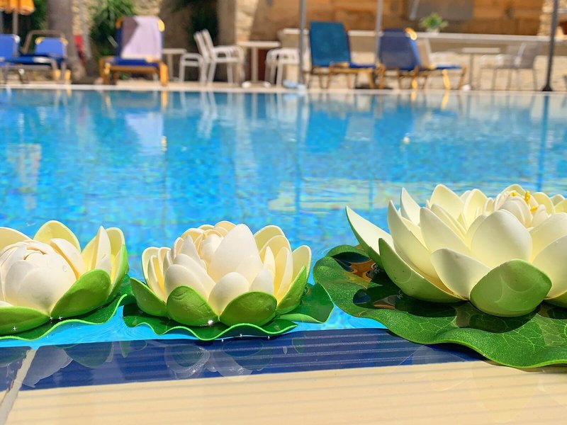 - Bazény: Detský bazén, Vyhrievaný vonkajší bazén, Vnútorný bazén, Vonkajší bazén, Slnečníky, Ležadlá pri bazéne