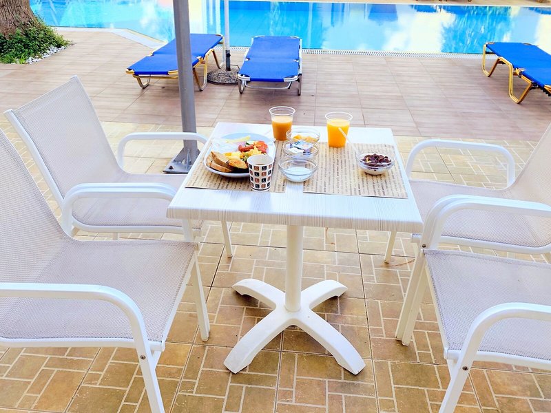 zus. Informationen: Touristensteuer Griechenland erhebt nach aktuellem Stand eine Klimasteuer (die sogenannte "Abgabe für Klimaresilienz") pro Zimmer pro Nacht, zahlbar vor Ort im Hotel, Unterkunft: