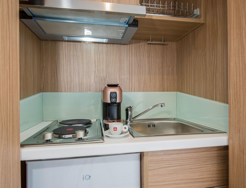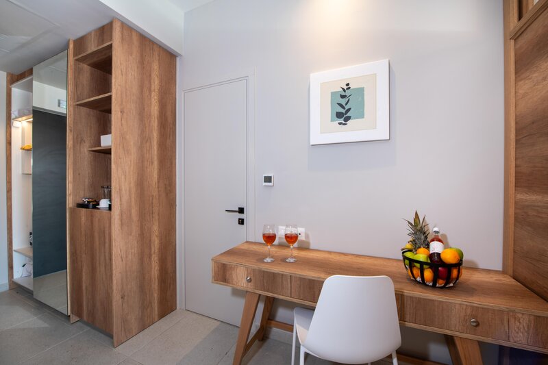 Superior mezonet (MA, cca 43 m2; pod HER321), obývacia/spacia časť na 2 poschodiach, klimatizácia, minichladnička, kávovar/čajník, TV, Wi-Fi, trezor. Kúpeľňa alebo sprchovací kút, WC, fén. Balkón. Max. 5 osôb
