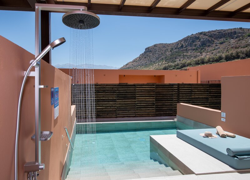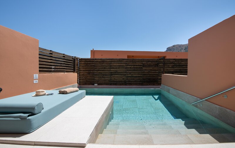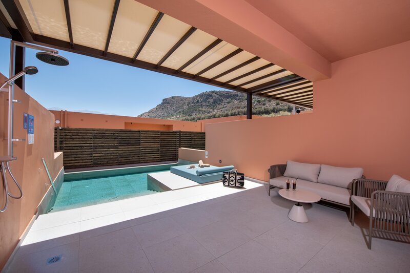 Superior-Doppelzimmer (DZP, ca. 24 qm; unter HER321), Klimaanlage, Minikühlschrank, Kaffee-/Teezubereiter, TV, WLAN, Safe. Dusche, WC, Föhn. Balkon oder Terrasse, Privatpool. Max. 2E