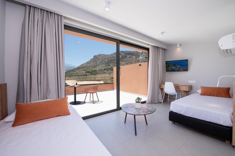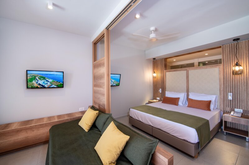 Superior-Familienzimmer (FZ, FZS, ca. 32 qm; unter HER621/HER321), Wohn-/Schlafbereich, Klimaanlage, Minikühlschrank, Kaffee-/Teezubereiter, TV, WLAN, Safe. Bad oder Dusche, WC, Föhn. Balkon oder Terrasse, wahlweise mit Meerblick (FZM, ca. 35 qm; unter HER321). Max. 3E+1K