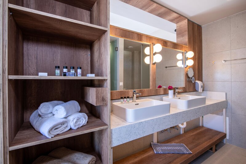 Dvojlôžková izba Superior (DZP, cca 24 m2; pod HER321), klimatizácia, mini chladnička, príslušenstvo na prípravu kávy/čaju, TV, WiFi, trezor. Sprcha, WC, fén. Balkón alebo terasa, súkromný bazén. Maximálne 2E