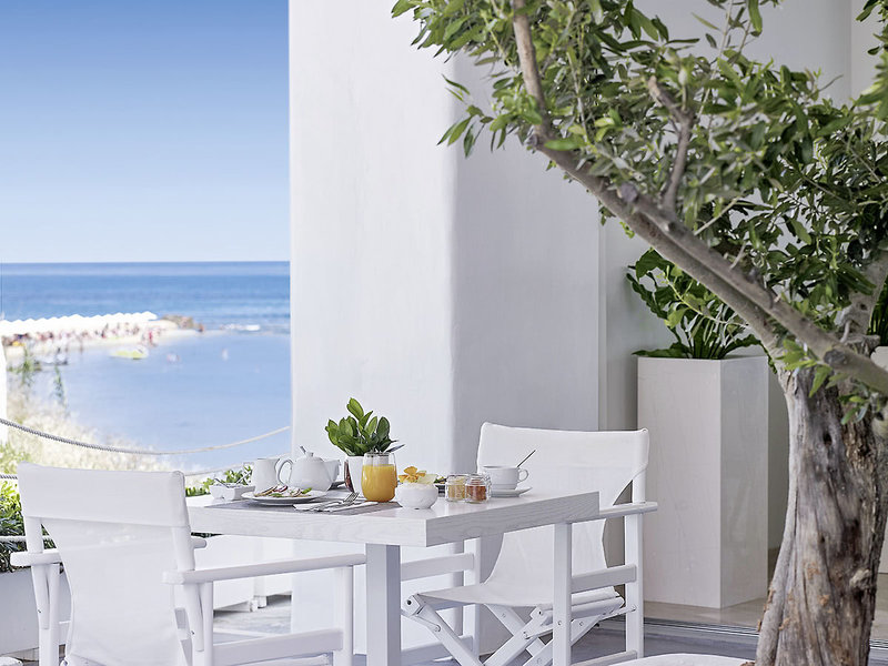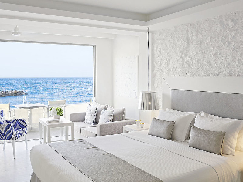 Seafront Suites (SUF, cca 40 m2; pod HER377), nachádzajúce sa priamo na pláži, zrekonštruované, klimatizácia, minibar (1 fľaša vody a nealkoholické nápoje pri príchode), kávovar na espresso, 32-palcový TV, telefón, hudobný systém, Wi-Fi, trezor, kúpeľňa so sprchovacím kútom a WC. Balkón/terasa s výhľadom na more. Max. 2 dospelí + 1 dieťa