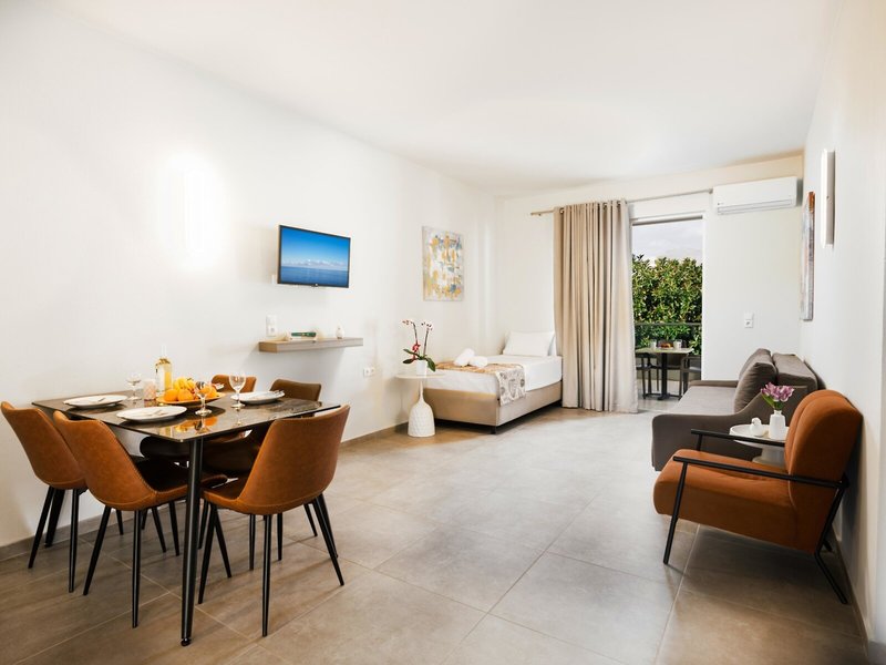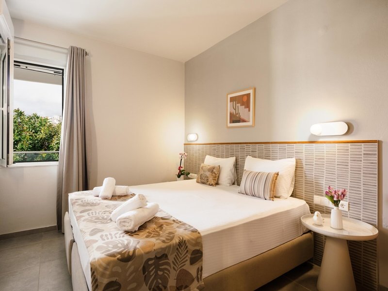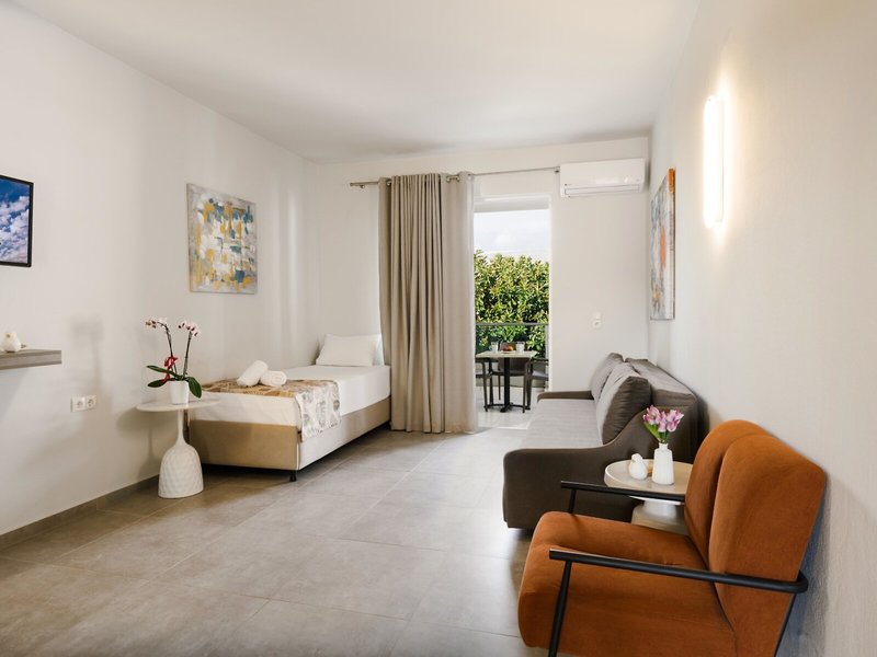 - Apartment Superior 1 Bedroom (APX1), Appartement, Nichtraucherzimmer, Mindestalter im Zimmer: 0 Jahre, im Nebengebäude, Straßenseite, eingeschränkter Meerblick, Bergblick, ca. 60 m², Gesamtanzahl der Räume in diesem Zimmertyp: 2, Aufteilung wie folgt: bestehend aus 2 Doppelzimmern mit Verbindungstür, kombiniertes Wohn-/Schlafzimmer, 4 Einzelbetten (90x200cm), Babybett: Anfrage & Reservierung notwendig, Klimaanlage: pro Tag ca. 5 EUR, kalt, warm, Safe: pro Tag ca. 1.5 EUR, Sofa, Kochnische, Kühlschrank, Gas/E-Herd, Backofen, Kochplatte, Wasserkocher, Esstisch, Internet: WLAN/WiFi: ohne Gebühr, Fernseher: im Wohnbereich, Badewanne oder Dusche, Dusche, Föhn, Kosmetikspiegel, Balkon: mit Sitzgelegenheit