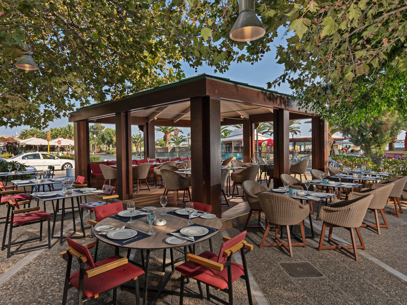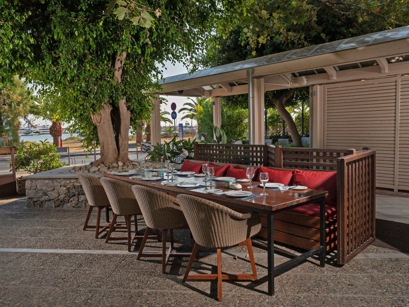 - Hauptrestaurant „MOULVERI“: ab 0 Jahre, Küche: griechisch, international, landestypisch, mediterran, regional, Fisch/Meeresfrüchte, Grillgerichte, Babynahrung: Anfrage notwendig, glutenfreie Gerichte: Anfrage notwendig, lactosefreie Gerichte: Anfrage notwendig, leichte Gerichte: Anfrage notwendig, saisonale Gerichte: Reservierung nicht notwendig, vegetarische Gerichte: Anfrage notwendig, vegane Gerichte: Anfrage notwendig, Vollwertkost: Anfrage notwendig, Buffet, à la carte, Showcooking, Anfrage & Reservierung nicht notwendig, gegen Gebühr, März - November, 07:30 Uhr - 10:00 Uhr und 19:00 Uhr - 21:30 Uhr, mit Terrasse, Kinderhochstuhl, angemessene Kleidung erwünscht