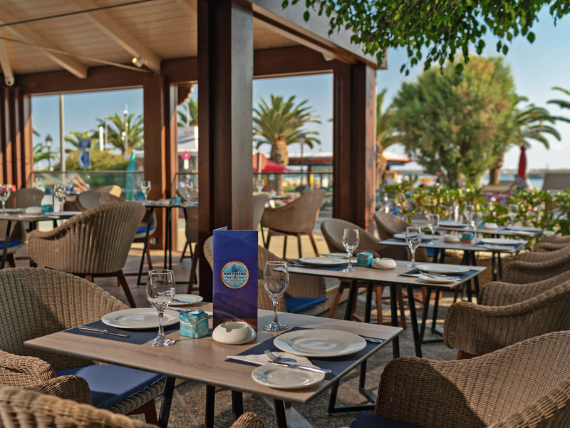 - Restaurant „NAVY BLEND FINE DRINKING QUALITY FOOD“: ab 0 Jahre, Küche: griechisch, international, Fisch/Meeresfrüchte, Grillgerichte, Babynahrung: Anfrage notwendig, Diätküche: Anfrage notwendig, glutenfreie Gerichte: Anfrage notwendig, lactosefreie Gerichte: Anfrage notwendig, leichte Gerichte: Anfrage notwendig, saisonale Gerichte: Reservierung nicht notwendig, vegetarische Gerichte: Anfrage notwendig, vegane Gerichte: Anfrage notwendig, Vollwertkost: Anfrage notwendig, à la carte, Anfrage & Reservierung nicht notwendig, gegen Gebühr, März - November, täglich 10:00 Uhr - 23:00 Uhr, mit Terrasse, Kinderhochstuhl