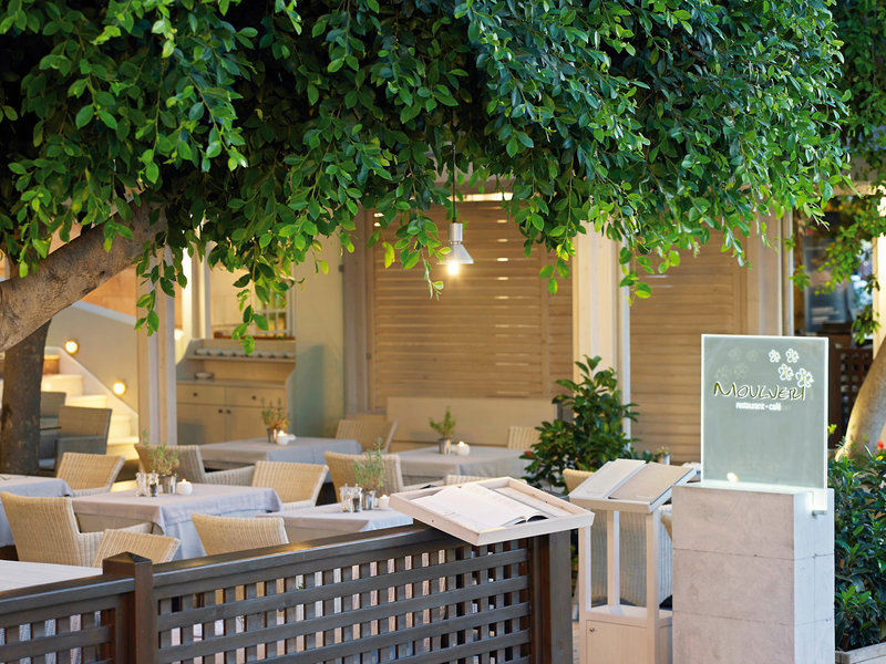 - Hlavná reštaurácia MOULVERI: od 0 rokov, kuchyňa: grécka, medzinárodná, typická pre krajinu, stredomorská, regionálna, ryby/plody mora, grilované jedlá, detská výživa: na vyžiadanie nutná, bezlepkové jedlá: na vyžiadanie nutné, bezlaktózové jedlá: na vyžiadanie potrebné, ľahké jedlá: nutná požiadavka, sezónne jedlá : Rezervácia nie je nutná, vegetariánske jedlá: nutná požiadavka, vegánske jedlá: požiadavka nutná, kompletné jedlá: požiadavka nutná, bufet, à la carte, show cooking, požiadavka a rezervácia nie je nutná, pre poplatok, marec - november, 7:30 - 10: 12:00 a 19:00 - 21:30, s terasou, detskou stoličkou, vhodné oblečenie