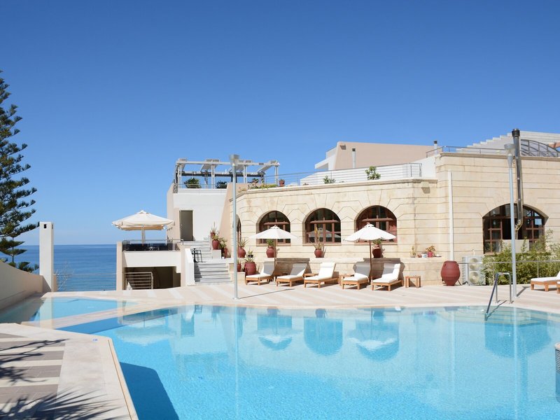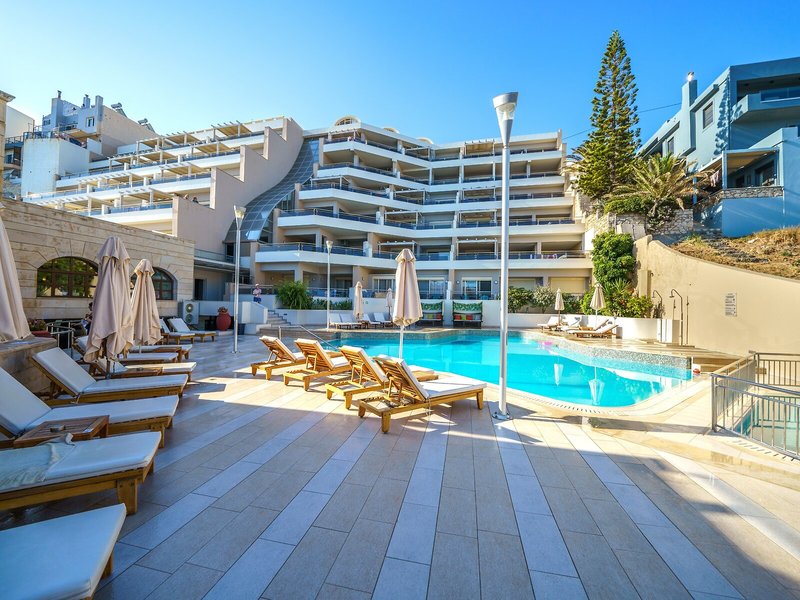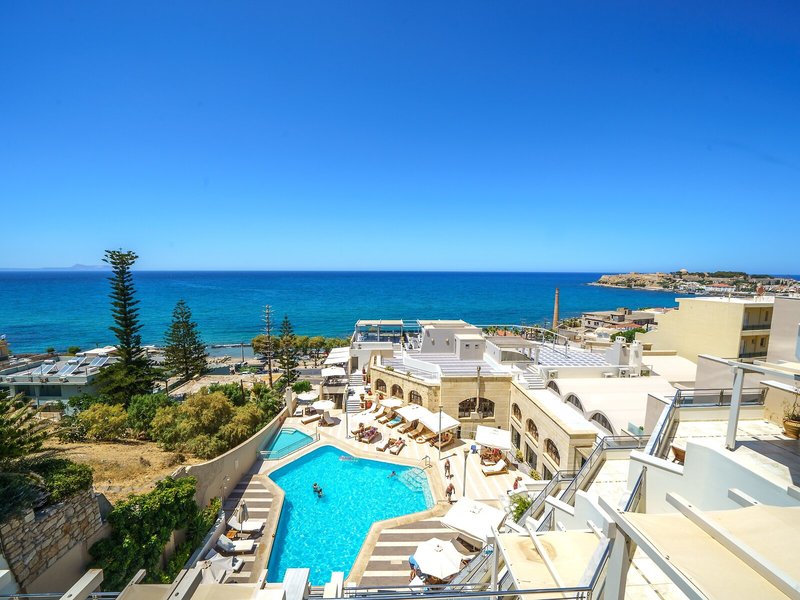 Poloha a okolie Tento apartmánový hotel, ideálny pre rodiny, sa nachádza v meste Rethymnon, priamo na pláži. Najbližšie letisko Chania (CHQ) je vzdialené približne 70 km.