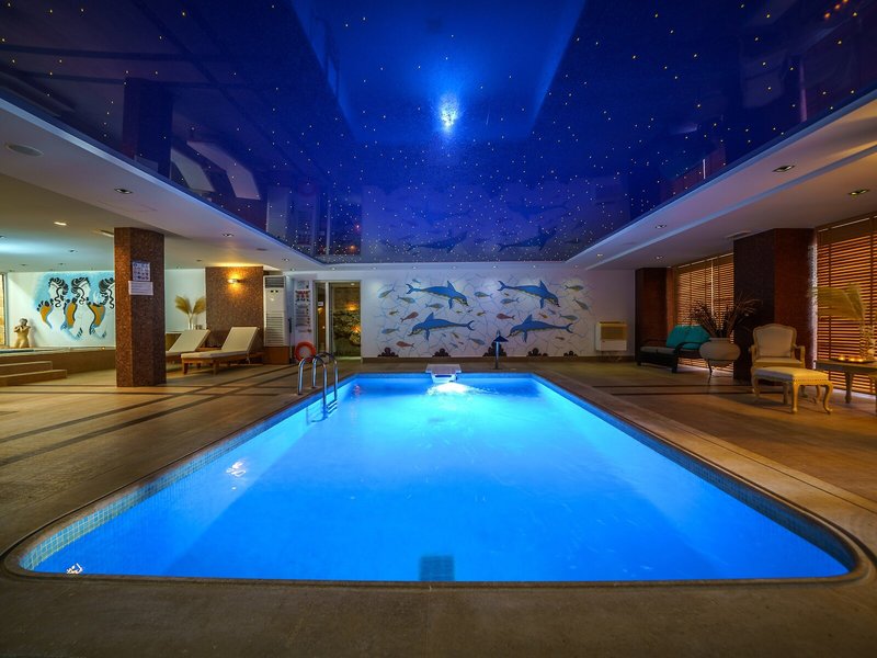 - Bazény: Detský bazén, Vnútorný bazén (za poplatok), Vonkajší bazén, Slnečníky pri bazéne, Ležadlá pri bazéne