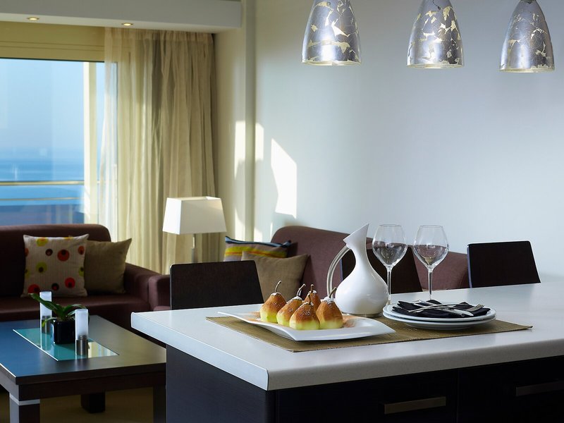 Vaše ubytovanie: Klimatizácia a individuálne nastaviteľné kúrenie zabezpečujú príjemnú klímu v izbách. Hostia si môžu vychutnať výhľad na more z balkóna alebo terasy. Izby sú vybavené manželskou posteľou alebo posteľou veľkosti king. Cennosti je možné bezpečne uložiť v trezore. K dispozícii je aj chladnička, sporák, zariadenie na prípravu čaju/kávy a umývačka riadu. Telefón s priamou voľbou, TV so satelitnými/káblovými programami a Wi-Fi pripojenie na internet (bezplatné) poskytujú maximálne pohodlie počas dovolenky. K vybaveniu izieb patria papuče. Kúpeľne sú vybavené sprchovacím kútom a vaňou. K dispozícii je sušič vlasov, kozmetické zrkadlo a župany. Apartmánový hotel ponúka rodinné izby a 42 nefajčiarskych izieb.