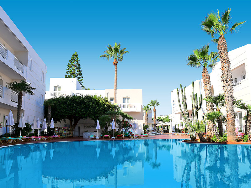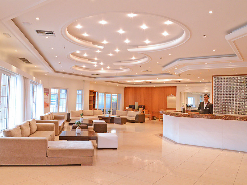 Ausstattung: Gepflegte Hotelanlage mit Gartenanlage, Swimmingpool, Sonnenterrasse, Liegen und Schirme (am Pool inkl. und am Strand gegen Gebühr), Snackbar. Empfangsbereich mit Rezeption, WLAN, Restaurant, 2 Bars. Landeskategorie: 4 Sterne, 149 Zimmer.