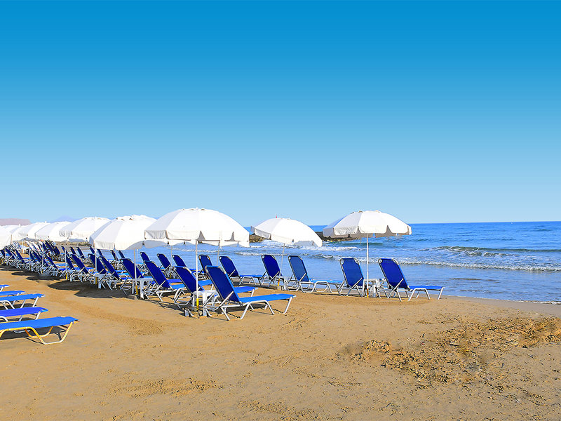 Poloha: Od pláže oddelená tichou pobrežnou cestou, centrum Gouves s nákupnými a zábavnými možnosťami je vzdialené cca 200 m.