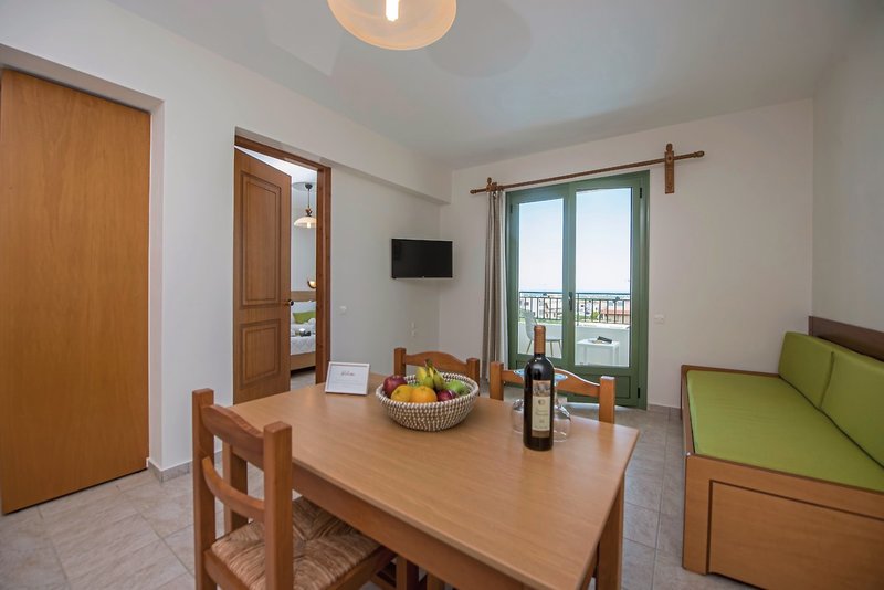 - 51-60 m2, apartmán, 2 oddelené spálne, kombinovaná obývačka/spálňa, 3 samostatné lôžka, 1 manželská posteľ, 1 kúpeľňa, vaňa, WC, sušič vlasov, klimatizácia, trezor, TV (satelitná TV, plochá obrazovka), kuchynský kút, chladnička, balkón (zariadený)