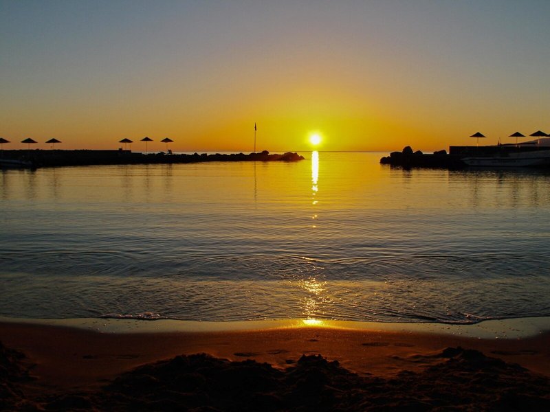 - Strand: Sand, Kies, flach abfallend, Badeschuhe empfehlenswert, Liegen, Sonnenschirme