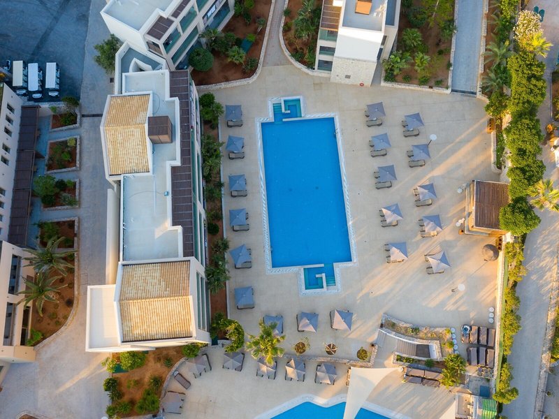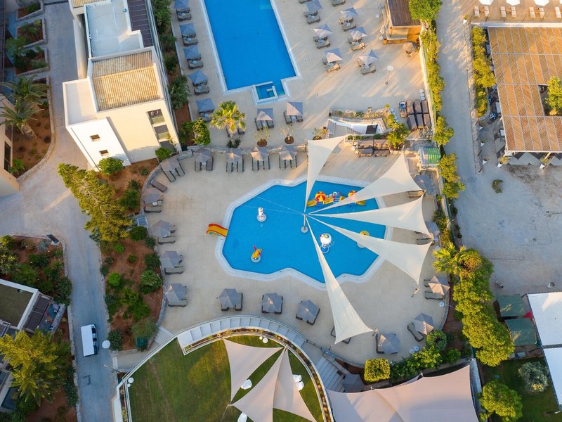 Poloha a okolie Moderný, ekologický a priestranný rezort sa nachádza priamo pri mori, v piesočnatej zátoke. Vo vode sú nejaké kamene, preto sa odporúča kúpacia obuv. Do Chersonisosu je to cca 2 km a do Stalis cca 1,5 km. Letisko Heraklion je vzdialené asi 25 km.