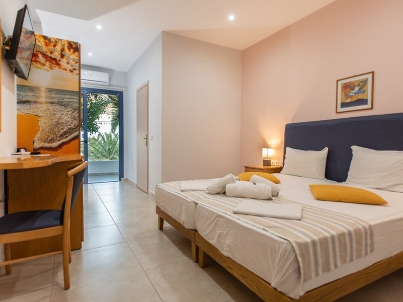 Lage & Umgebung Das Hotel liegt in Agia Galini, ca. 5 Minuten vom Sandstrand entfernt, in ruhiger Lage.