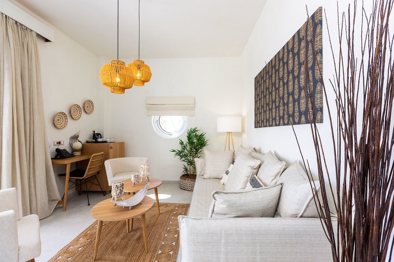 Ausstattung: Die Hotelanlage besteht aus insgesamt 6 Gebäuden mit 65 Zimmern und verfügt über eine 24-h-Rezeption. Für das leibliche Wohl sorgt das Hauptrestaurant und an zwei Bars werden verschiedene Getränke serviert. Im Außenbereich dient eine Sonnenterrasse mit zwei Swimmingpools zur Entspannung. Hier sind Liegen und Sonnenschirme inklusive, am Strand gegen Gebühr. Handtücher sind gegen Kaution erhältlich. Wi-Fi steht kostenfrei zur Verfügung. Je nach Verfügbarkeit gibt es kostenfreie Parkplätze.
