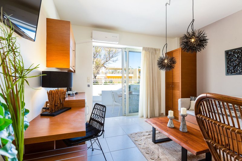 Doppelzimmer Superior: Verfügen bei gleicher Ausstattung wie die Doppelzimmer über eine höherwertige Einrichtung, sind geräumiger, bestehen aus einem Wohnzimmer und einem separaten Schlafraum und liegen im Erdgeschoss mit Terrasse (DSU).