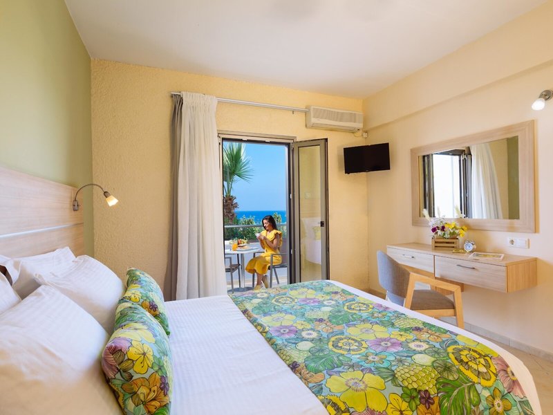 - Superior Room (DZX1), Dreibettzimmer, Nichtraucherzimmer, Mindestalter im Zimmer: 18 Jahre, im Hauptgebäude, Meerseite, Meerblick, ca. 25 m², letzte Komplettrenovierung 2018, letzte Teilrenovierung 2019, Gesamtanzahl der Räume in diesem Zimmertyp: 6, Aufteilung wie folgt: kombiniertes Wohn-/Schlafzimmer, 3 Einzelbetten (90x200cm), Babybett, Klimaanlage: pro Tag ca. 5 EUR, bei All Inclusive inklusive, individuell regelbar, kalt, warm, Heizung: individuell regelbar, Fußboden: Fliesenboden, Safe: Barzahlung, pro Woche ca. 10 EUR, Sofa, Schreibtisch, Wäschetrockner, Kühlschrank, Wasserkocher, Telefon, Internet: WLAN/WiFi, Fernseher: Flatscreen, deutsches Programm, Sat-TV, Radio, Reinigungsservice, Badewanne oder Dusche, WC, Balkon: mit Sitzgelegenheit, Balkon oder Terrasse, Terrasse