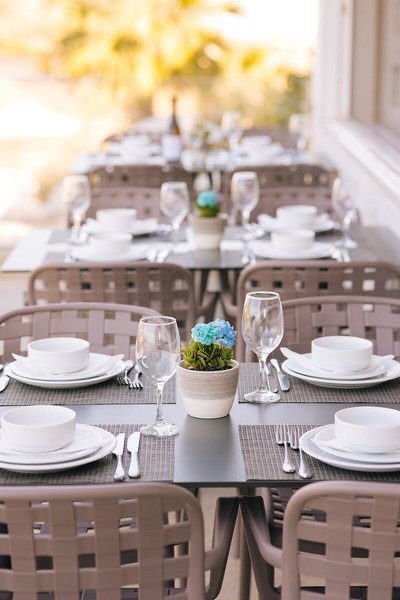 - Hlavná reštaurácia: Kuchyňa: Grécka, Stredomorská, Bufetová, Set menu, Fajčiarska
