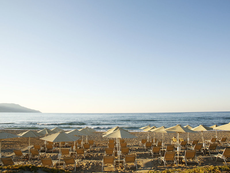 - Strand „Paralia Kourna“: Sand, Liegestühle: gegen Gebühr