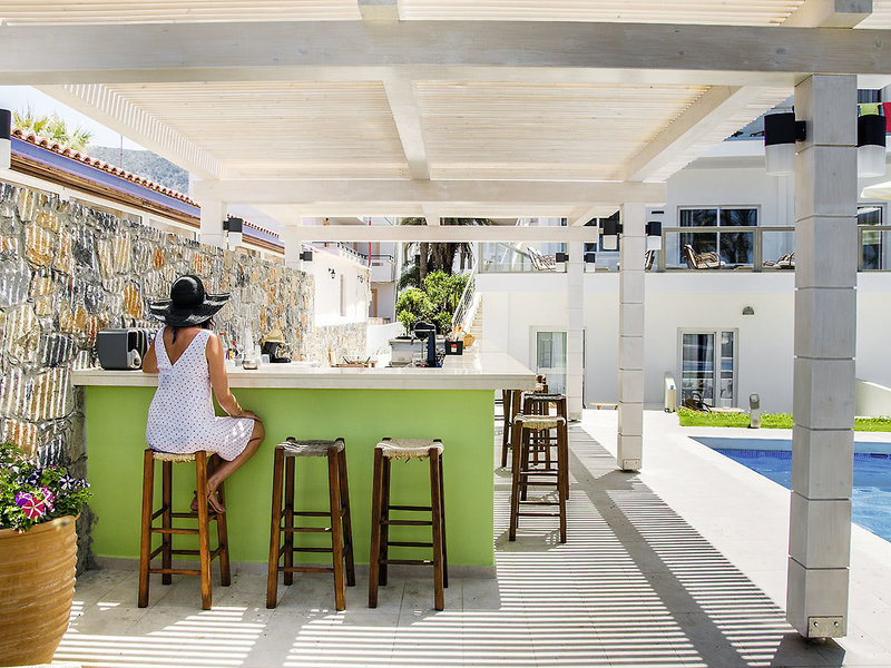 Ausstattung: Gemütlich gestaltete Hotelanlage mit Garten, Swimmingpool, Liegen, Sonnenschirmen am Pool und im Garten (am Strand gegen Gebühr), Poolbar. Empfangsbereich mit Rezeption, WLAN (in den öffentlichen Bereichen), Mietsafe, Speisesaal mit Terrasse und Meerblick. Landeskat.: 3 Sterne, 28 Zi.
