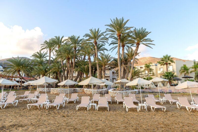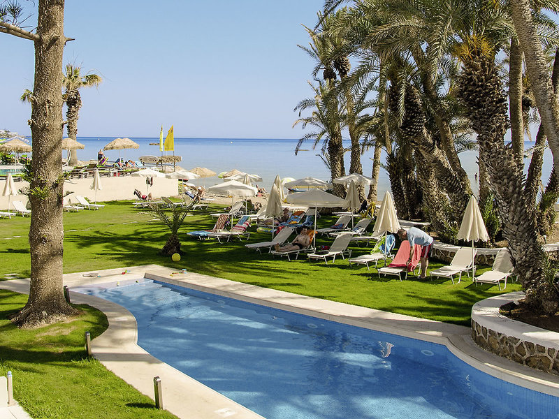 Lage: Direkt am Strand in Stalis, in einer schönen Palmengartenanlage. Gemütliche Tavernen und Bars in der Nähe des Hotels. Nach Malia mit Souvenirläden und diversen Restaurants sind es ca. 5 km. Es bestehen regelmäßige Busverbindungen.
