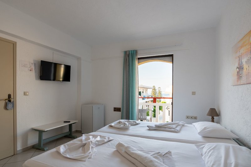 Doppelzimmer: Die gemütlich eingerichteten Zimmer bieten eine individuell regulierbare Klimaanlage (gegen Gebühr), Wi-Fi, Telefon, Safe (gegen Gebühr), Sat.- TV, Kühlschrank (gegen Gebühr) Dusche, WC und Balkon oder Terrasse (D/DI). Wahlweise auch zur Alleinnutzung (DE/DEA) buchbar.