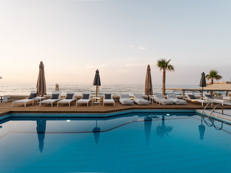 Poloha a okolie: Komplex sa nachádza priamo na piesočnatej pláži Kallithea a ponúka ideálny východiskový bod na objavovanie mesta Rethymno a jeho okolia. Historické centrum s benátskym prístavom a pevnosťou Fortezza je vzdialené približne 2 km. V blízkosti sa nachádzajú obchody, taverny a bary. Autobusová zastávka s pravidelnými spojmi do centra mesta je vzdialená približne 100 m.
