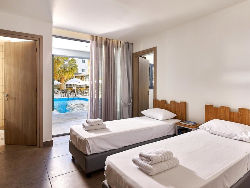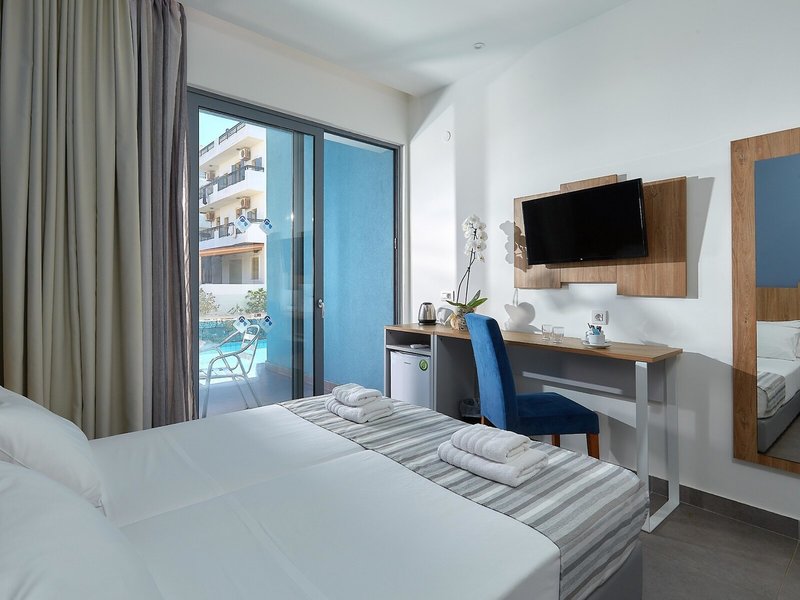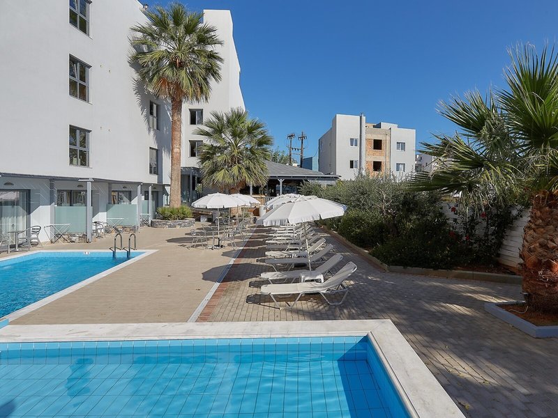 Poloha a okolie Hotel sa nachádza v srdci mesta Hersonissos. Po niekoľkých metroch sa dostanete na pláž, do reštaurácií a nákupných centier a napriek tomu dom ponúka všetky výhody hotela v tichej bočnej ulici. V blízkosti premávajú spoje verejnej dopravy, vodný park Star Beach je vzdialený približne 25 minút chôdze a mesto Stalida je vzdialené približne 5 km.