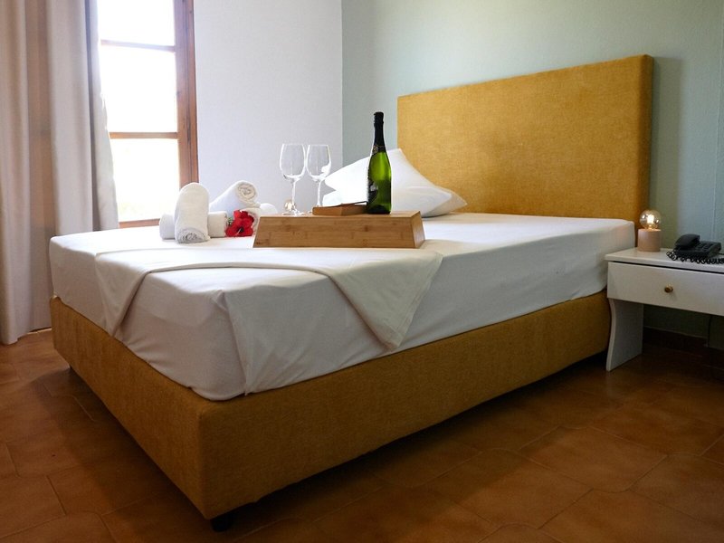 - Rodinná izba Open Plan (FZX1), rodinná izba, orientovaná do vnútorného dvora, na krajinu, výhľad na bazén, výhľad do záhrady, cca 23 m², posledná čiastočná rekonštrukcia 2023, 1 manželská posteľ, 1 poschodová posteľ, klimatizácia: cca 7 EUR, podlaha: dláždená podlaha, chladnička, rýchlovarná kanvica, Internet: WLAN/WiFi: bezplatná služba, TV, satelitná TV, upratovanie.