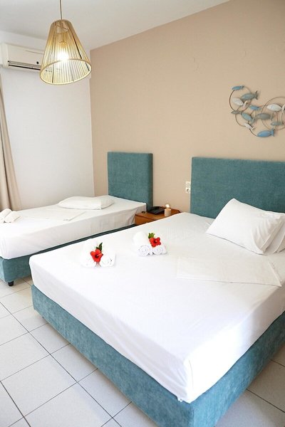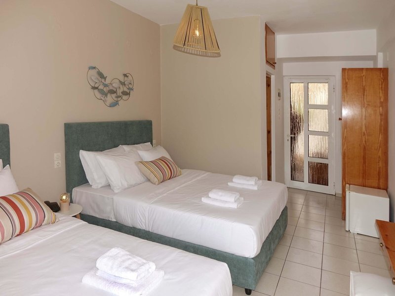 - Trojlôžková izba Standard (DZX2), trojlôžková izba, novostavba, orientovaná do vnútorného dvora, výhľad na hory, výhľad do záhrady, cca 21 m², posledná čiastočná rekonštrukcia 2024, 3 prístelky, klimatizácia: cca 7 EUR, podlaha: dláždená podlaha, chladnička, rýchlovarná kanvica, Internet: WLAN/WiFi: zadarmo, TV: satelitná TV, upratovacia služba, sprcha, fén.