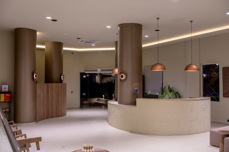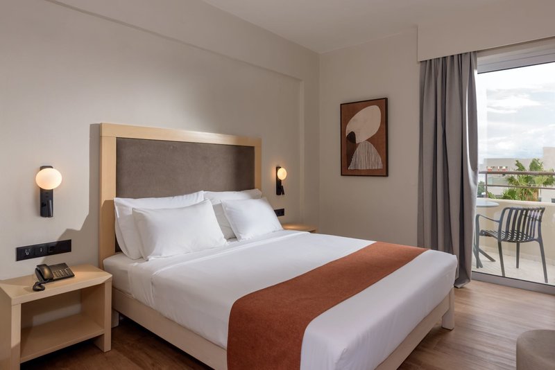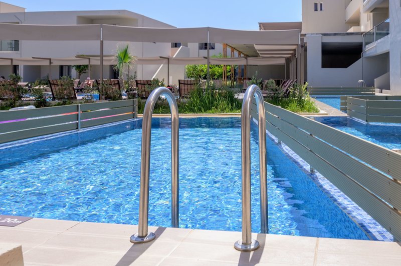 Ausstattung: Die gepflegte Anlage bietet neben bestem Service und griechischer Gastfreundschaft eine moderne Ausstattung und jeglichen Komfort für einen erholsamen Urlaub. Das Hotel bietet neben 190 Zimmern eine Rezeption (24 h), Lobby, Lift, Lounge mit Terrasse, ein kleines Hallenbad, Bar, Hauptrestaurant sowie ein À-la-carte-Restaurant. Wi-Fi ist in der gesamten Anlage inklusive. In der Außenanlage befinden sich 3 Swimmingpools für Familien mit einem Wasserpark (3 Rutschen), 1 Relax Pool (adults friendly, ab 12 Jahren), 1 Kinderpool sowie ein Babybecken mit Wasserspielen. Die Sonnenterrassen verfügen über ausreichend Platz zum erholen und eine Poolbar sorgt für Erfrischungen. Liegen und Schirme sind am Pool inklusive, am Strand gegen Gebühr. Badehandtücher sind gegen Kaution erhältlich.