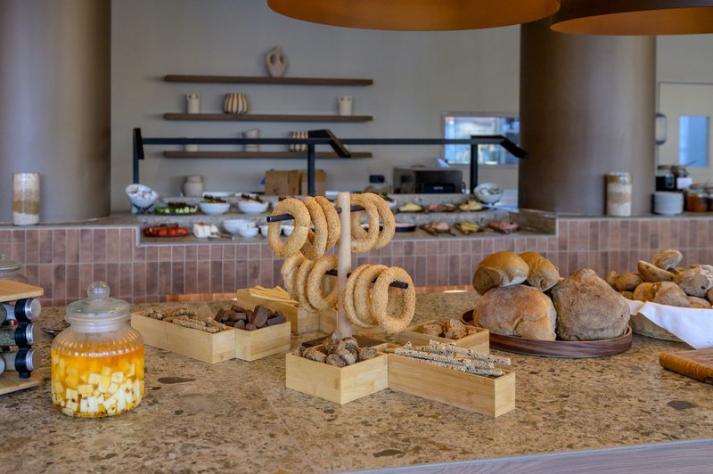 All Inclusive: Pestrá kuchyňa hlavnej reštaurácie s gréckou a medzinárodnou kuchyňou, ako aj show cooking a tematické večery nesplnia žiadne želania. Raňajky formou bufetu s prípravou jedla pred očami hostí sa konajú od 7:15 do 10:30. Pre tých, ktorí vstávajú neskoro, sú tu menšie kontinentálne raňajky od 10:30 do 11:00. Na obed (12:30-14:30) a večeru (18:30-21:30) je k dispozícii bohatý bufet. Džusy, čapované pivo, domáce červené a biele víno, nealkoholické nápoje a neperlivá voda sú k dispozícii od 10:30 do 17:30, zmrzlina je k dispozícii od 10:30 do 17:30 a výber koláčov a sušienok od 17:00. Občerstvenie ako alkoholické a nealkoholické nápoje, čapované pivo, miestne destiláty, koktaily a mocktaily, voda z automatu, rôzne miestne džúsy, domáce víno (biele, ružové, červené), long drinky, káva a čaj sú k dispozícii v baroch, ktoré sú otvorené od 10:00 do 24:00.
