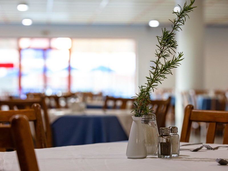- Hlavná reštaurácia: Kuchyňa: grécka, medzinárodná, stredomorská, regionálna, bufet, máj - október, denne 7:30 - 9:30 hod., denne 12:15 - 14:15 hod., denne 19:00 - 21:00 hod p.m , klimatizované, s terasou, pri bazéne, fajčiarska, detská stolička