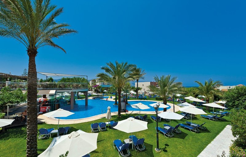 Ausstattung: Die familienfreundliche 4-Sterne Hotelanlage ist ein moderner Hotelkomplex mit 168 Zimmern, verteilt auf mehrere Gebäude, in eleganter, kretischer Architektur mit Blick auf das türkisfarbende Wasser der Ägäis und das Küstendorf Rapaniana in Chania. Kürzlich teilweise renoviert, ist die Anlage eines der besten Familienhotels der Gegend und bietet eine Vielzahl von verschiedener Unterkunftsmöglichkeiten.