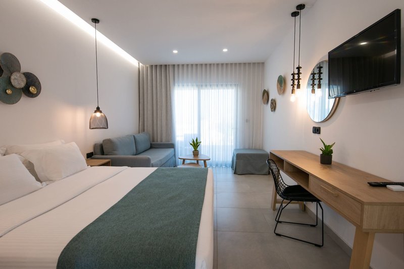 Vybavenie: Tento rodinný 4-hviezdičkový hotelový komplex je moderné zariadenie so 168 izbami rozmiestnenými v niekoľkých budovách s elegantnou krétskou architektúrou a výhľadom na tyrkysové vody Egejského mora a pobrežnú dedinku Rapaniana v Chanii. Komplex bol nedávno čiastočne zrekonštruovaný a je jedným z najlepších rodinných hotelov v oblasti a ponúka rôzne možnosti ubytovania.