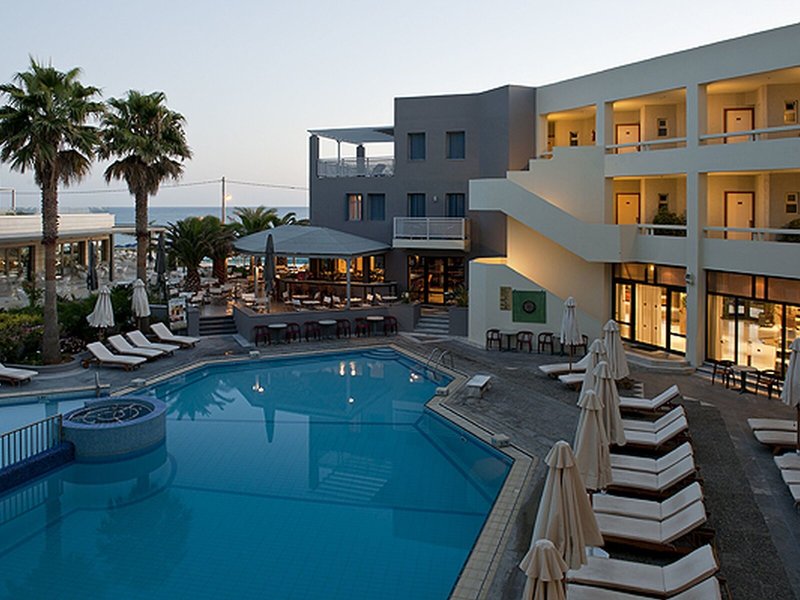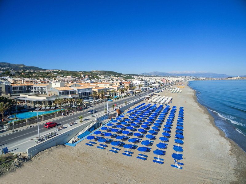 Poloha a okolie Mestský hotel, ideálny pre dovolenkárov na pláži, rodiny, mladých ľudí a milovníkov prírody, sa nachádza v meste Rethymnon, priamo na piesočnatej a kamienkovej pláži, pri hlavnej ceste do centra mesta Rethymnon s turistickými atrakciami asi 2,2 km. Priamo pred ubytovaním sa nachádzajú rôzne bary, obchody a reštaurácie.
