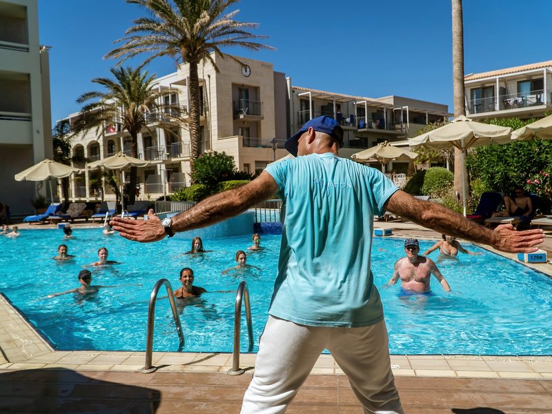 Sport & Fitness: Neben Innen- und Außenpools gibt es einen Kinderbadebereich. Liegestühle und Schirme auf der Sonnenterrasse machen den Urlaub perfekt. Eine Pool-/Snackbar ist vorhanden. Wer auch auf Reisen nicht auf Sport verzichten möchte, dem bietet das Hotel Reiten. Zum Wassersportprogramm des Hauses gehören Schnorcheln, Tauchen, Wasseraerobic und Aqua-Fitness. Das Hotel bietet Sportfreunden auch viele Aktivitäten im Innenbereich, nämlich ein Fitnessstudio, Tischtennis, Yoga, Gymnastik, Aerobic und Pilates. In der Unterbringung werden verschiedene Wellnessangebote wie ein Spa und ein Schönheitssalon offeriert. Gegen Gebühr können die Gäste zudem eine Sauna, ein Dampfbad, einen Hammam, Massage-Anwendungen, Anti-Aging-Anwendungen, eine Aromatherapie, eine Cellulite-Behandlung und eine Fussreflexzonen-Massage in Anspruch nehmen. Ein Animationsprogramm und Live-Musik sind Möglichkeiten der Freizeitgestaltung.