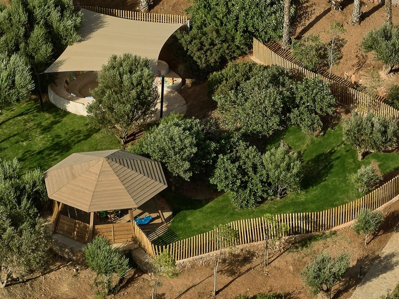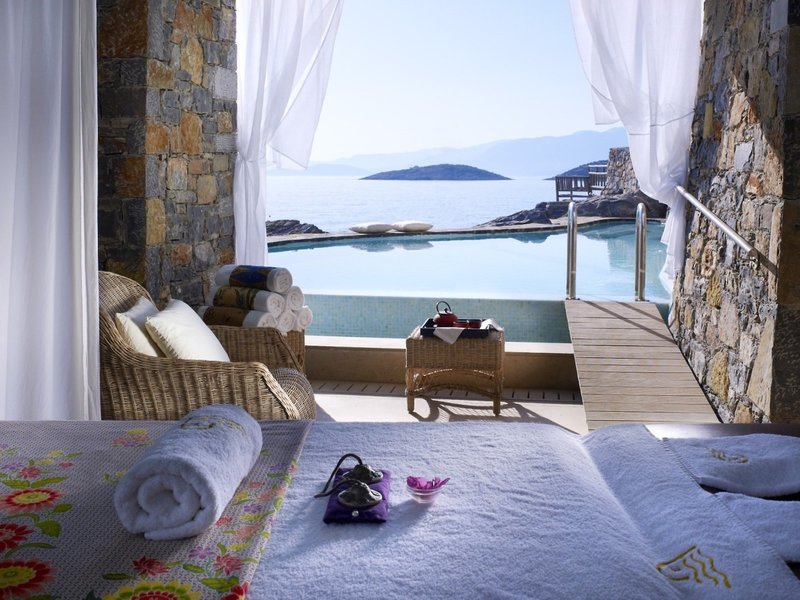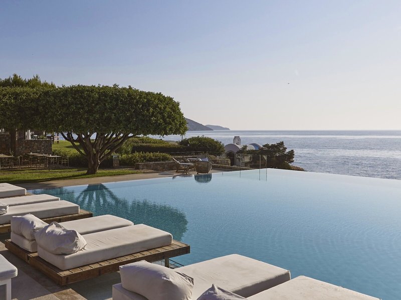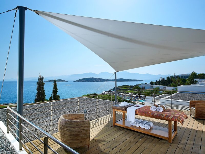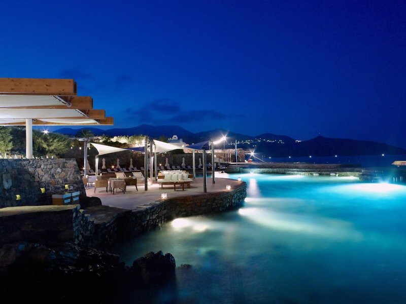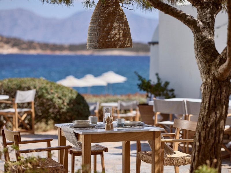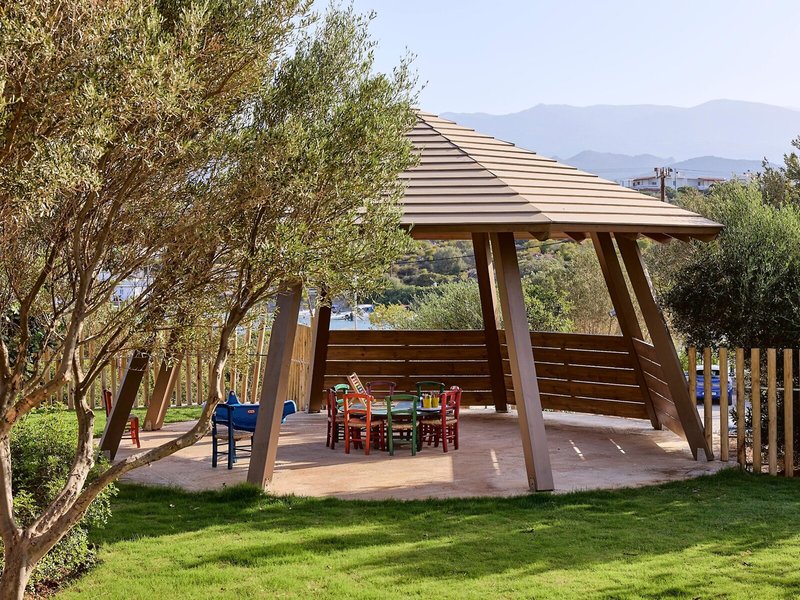 Poloha a okolie: Biele bungalovy sa nachádzajú na polostrove za obľúbeným letoviskom Agios Nikolaos, uprostred stromov a upravených trávnikov, a pripomínajú malú krétsku dedinku s barmi, reštauráciami a tradičnou gréckou kaviarňou (kafenion) priamo nad morom. K dispozícii je aj malá, umelo vytvorená, súkromná piesočnato-kamienková pláž a skalnatá plošina na kúpanie. Centrum mesta je vzdialené približne 1,5 km.