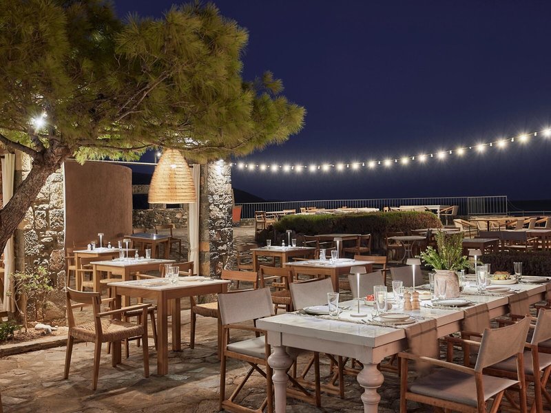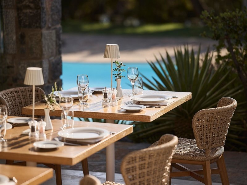 - Špecializovaná reštaurácia KAFENION GREEK RESTAURANT: Kuchyňa: grécka, tradičná, stredomorská, regionálna, ryby/morské plody, grilované jedlá, bezlepkové jedlá (za poplatok, na požiadanie), detské menu (za poplatok, na požiadanie), bezlaktózové jedlá (za poplatok, na požiadanie), sezónne jedlá (za poplatok, na požiadanie), vegetariánske jedlá (za poplatok, na požiadanie), vegánske jedlá (za poplatok, na požiadanie), à la carte, menu, dine-around (za poplatok), otvorené denne od 19:30 do 22:30, s terasou, na pláži, fajčiarska zóna, k dispozícii detská stolička, elegantný neformálny dress code