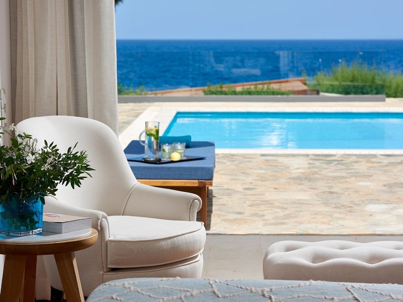 - Thalassa Villa SV Private Pool (VIM2), Villa, erste Strandreihe, Meerseite, Meerblick, Buchtblick, ca. 155 m², letzte Komplettrenovierung 2023, letzte Teilrenovierung 2025, Gesamtanzahl der Räume in diesem Zimmertyp: 4, Aufteilung wie folgt: Wohnzimmer, Maisonette, 3 Schlafzimmer, 3 Einzelbetten (95x200cm), 1 Doppelbett (190x200cm), 1 Schlafsofa (65x170cm), Babybett: ohne Gebühr, Anfrage notwendig, Klimaanlage: ohne Gebühr, individuell regelbar, kalt, warm, Fußboden: Fliesenboden, Safe: ohne Gebühr, Sitzecke, Sofa, Schreibtisch, Bügeleisen, Bügelbrett, Küche, Kühlschrank: ohne Gebühr, Gas/E-Herd, Backofen, Geschirrspüler, Nespressomaschine, Kaffee-/Teezubereiter, Wasserkocher, Toaster, Esstisch, Minibar: gegen Gebühr, Softdrinks: ohne Gebühr, Wasser: ohne Gebühr, alkoholische Getränke: gegen Gebühr, Snacks: ohne Gebühr, Minibarauffüllung: täglich, Telefon, Internet: WLAN/WiFi: ohne Gebühr, Fernseher: Flatscreen, im Wohnbereich, im Schlafzimmer, im Kinderzimmer, deutsches Programm, Sat-TV, Roomservice: 07:45 Uhr - 23:00 Uhr, gegen Gebühr, Butlerservice: täglich, ohne Gebühr, Reinigungsservice: täglich, ohne Gebühr, separate Dusche, separates WC, Bademantel: ohne Gebühr, Slipper: ohne Gebühr, 2 Bäder, Föhn, Kosmetikspiegel, Balkon: mit Sitzgelegenheit, Terrasse: mit Liegestühlen, mit Liegen, mit Sitzgelegenheit, Veranda, mit Dusche, mit Private Pool, mit Privat-Garten