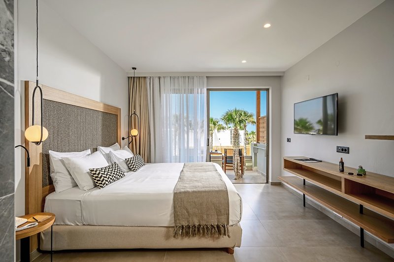 - 46-50 qm, Suite, Poolblick, 1 separates Schlafzimmer, Doppelbett, 2 Bäder, Dusche, WC, Badeslipper, Haartrockner, Klimaanlage, individuell regulierbar, Minibar kostenpflichtig, Safe, Bügeleisen, Trockner, 1 TV (Sat-TV, Flachbildschirm), WLAN, Kaffee/Tee, Kühlschrank, Terrasse (möbliert), direkter Poolzugang, Gemeinschaftspool, hochwertige Badartikel