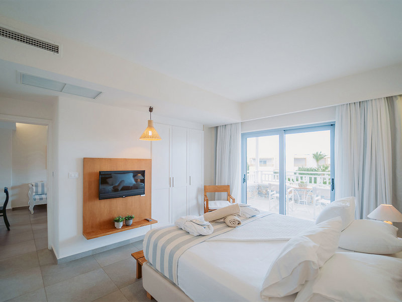 Besonderer Luxus für Ihren Urlaub: Juniorsuite (JSU, ca. 35 qm, bis 01.11.25), renoviert, Klimaanlage, Kühlschrank, TV, WLAN, Safe. Dusche, WC, Föhn. Balkon/Terrasse mit Zugang zum Swim-Up-Pool. Max. 2E