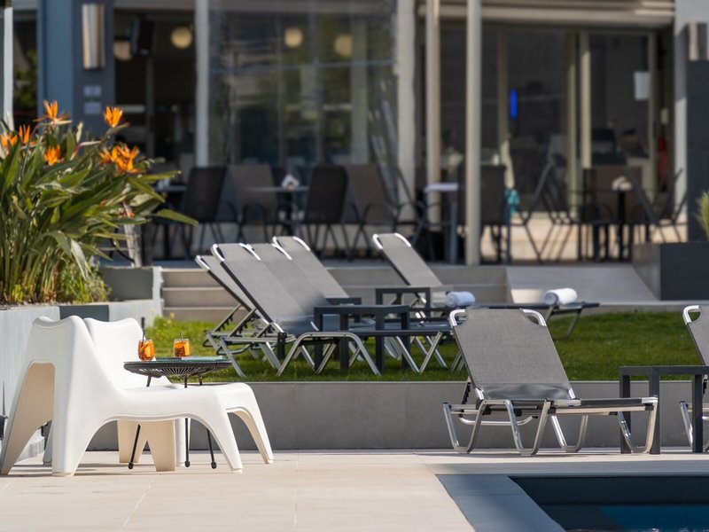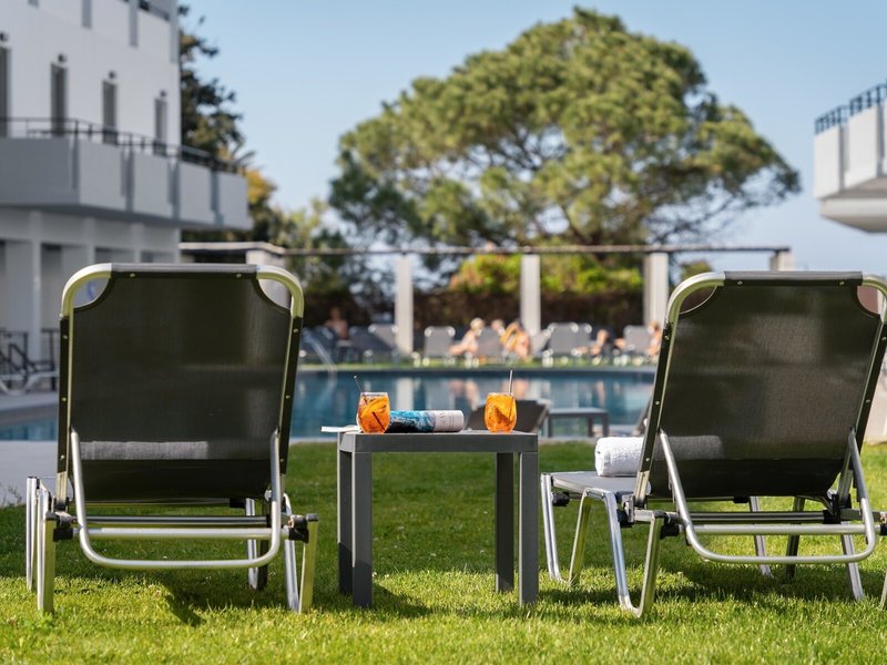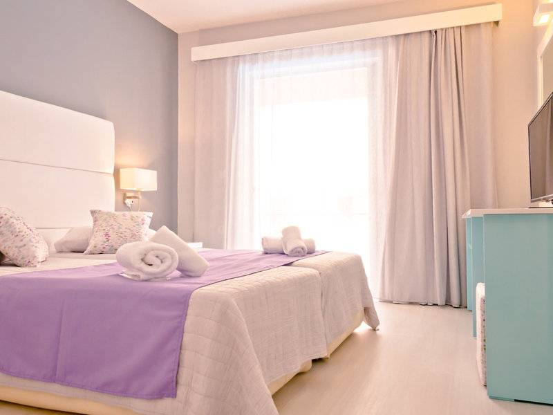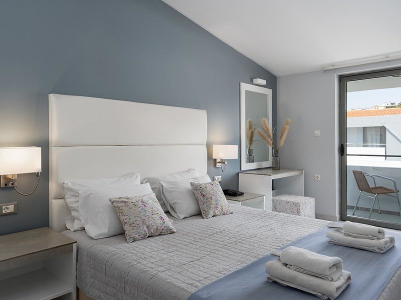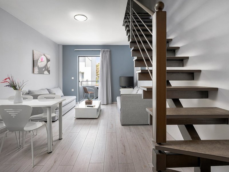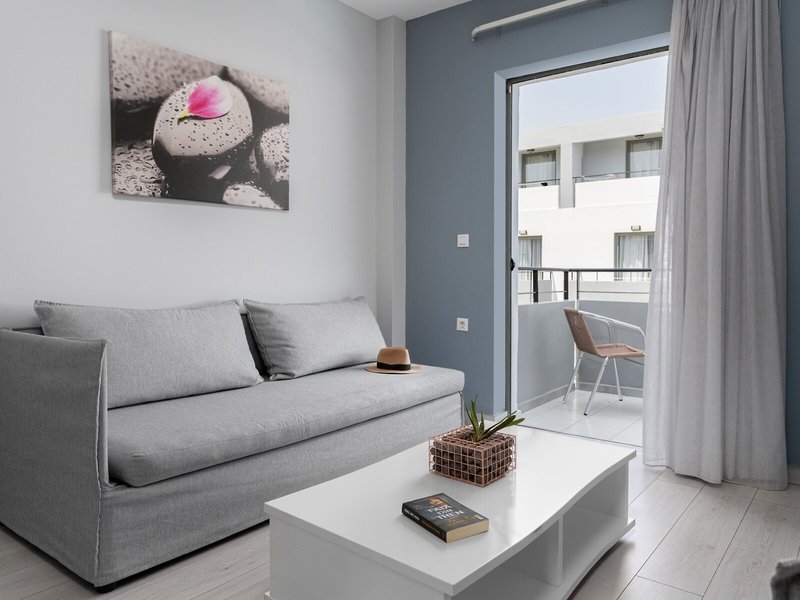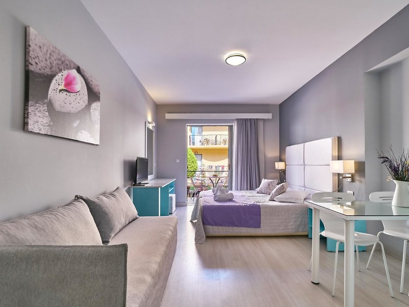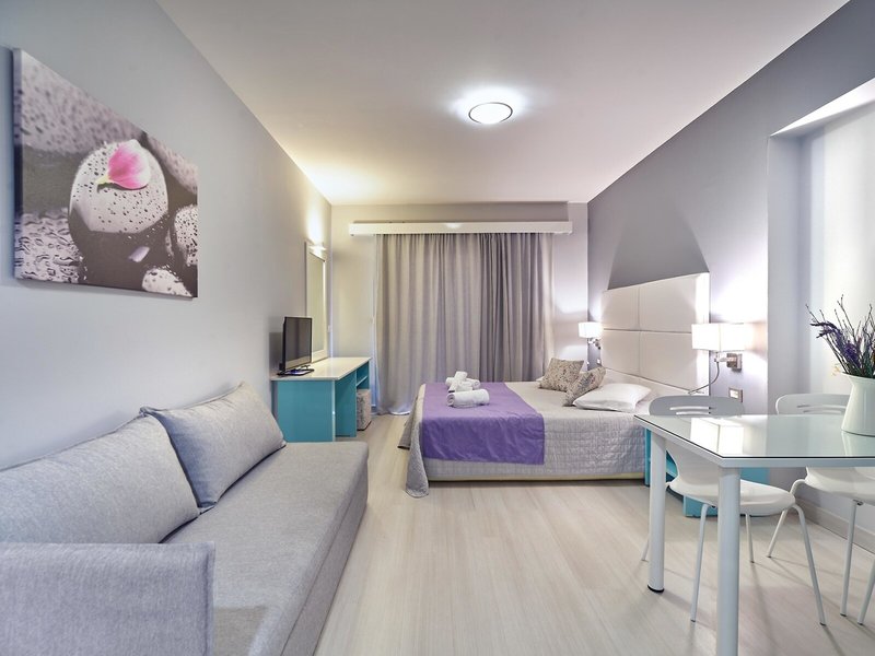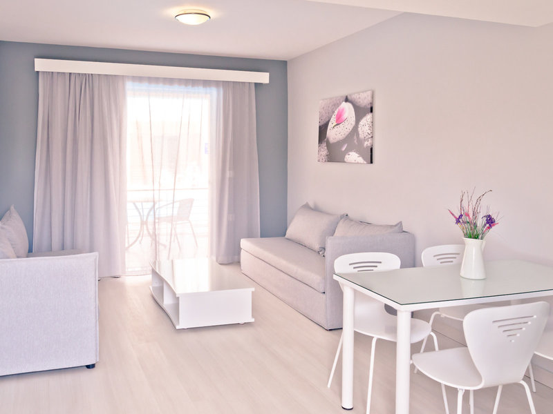 - Appartement (APX2), Appartement, Nichtraucherzimmer, im Hauptgebäude, Poolseite, Poolblick, Gartenblick, ca. 50 - 50 m², letzte Komplettrenovierung 2018, letzte Teilrenovierung 2026, Gesamtanzahl der Räume in diesem Zimmertyp: 2, Aufteilung wie folgt: bestehend aus 2 Zimmern, optisch getrennt durch Schiebetür, 1 Schlafzimmer, 2 Einzelbetten, 2 Schlafsofas (90x200cm), Klimaanlage: ohne Gebühr, Fußboden: Laminat, Safe: ohne Gebühr, Kühlschrank: ohne Gebühr, Internet: WLAN/WiFi: ohne Gebühr, Fernseher: Sat-TV, Dusche, Balkon oder Terrasse: mit Sitzgelegenheit