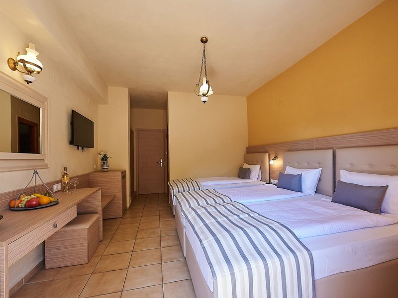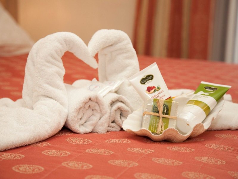 Ubytovanie: Izby sú klimatizované. Väčšina izieb má balkón alebo súkromnú terasu, kde si hostia môžu oddýchnuť a vychutnať si výhľad na more. Izby majú manželskú posteľ. Prístelky je možné vyžiadať. Najlepšou ochranou vecí hostí je trezor. Kuchynka je vybavená chladničkou a minichladničkou. Pre väčšie pohodlie hostí je k dispozícii lis na nohavice. Okrem toho je k dispozícii telefón s priamou voľbou, TV a WiFi (zadarmo). Kúpeľňa je vybavená sprchovacím kútom, vaňou a sušičom vlasov. Ubytovanie ponúka rodinné a nefajčiarske izby.