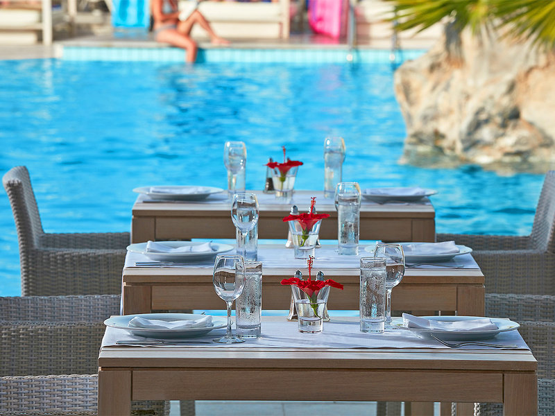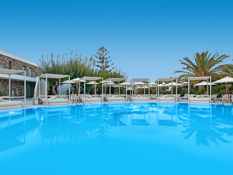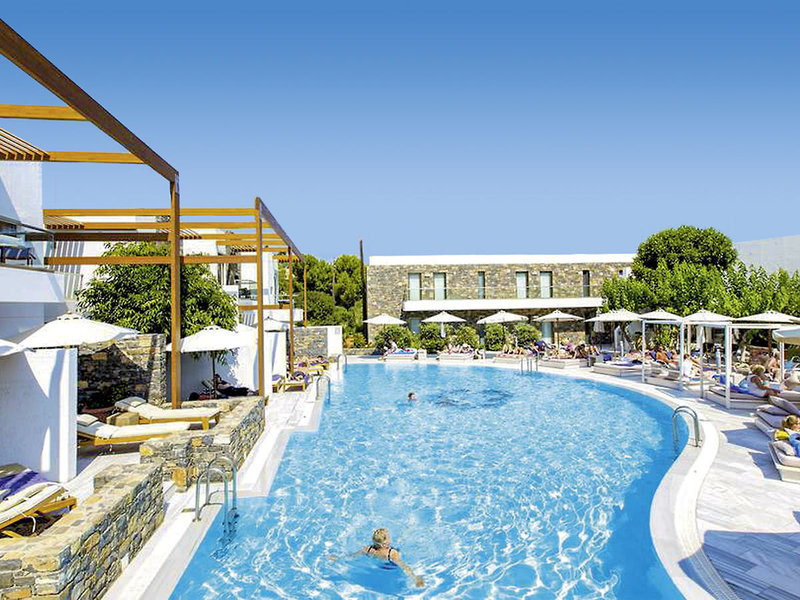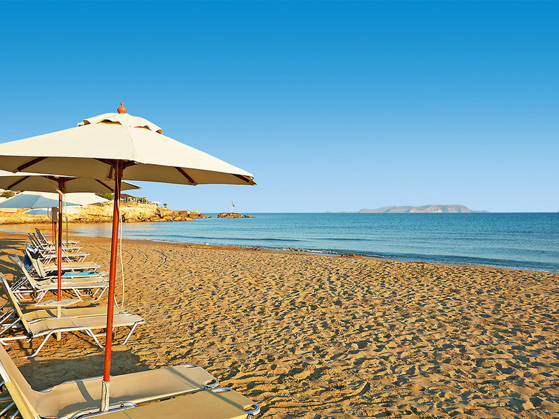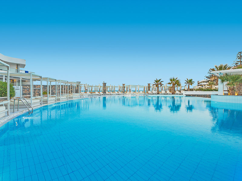 Lage: Die Uferstraße trennt das luxuriöse und moderne Hotel von einem schönen Sandstrand und mehreren kleineren Badebuchten. In der Umgebung gibt es zahlreiche Einkaufs- und Unterhaltungsmöglichkeiten, Geschäfte und Bars. Das Ortszentrum von Gouves ist ca. 2 km entfernt, Heraklion ca. 19 km.